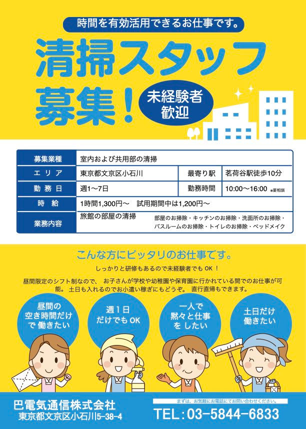 掃除スタッフ募集(未経験者大歓迎)
